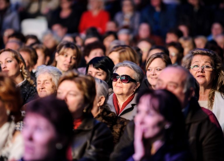 Rozvášnené, prevažne ženské publikum počas podujatia pri príležitosti osláv MDŽ v Nitre za účasti predstaviteľov vládnej strany. Nitra, 5. marec 2014. Foto: SITA/Martin Havran