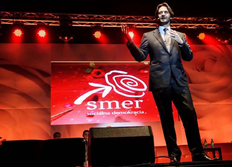Líder kandidátky Smeru do Európskeho parlamentu Maroš Ševčovič počas podujatia pri príležitosti osláv MDŽ v Nitre za účasti predstaviteľov vládnej strany. Nitra, 5. marec 2014. Foto: SITA/Martin Havran