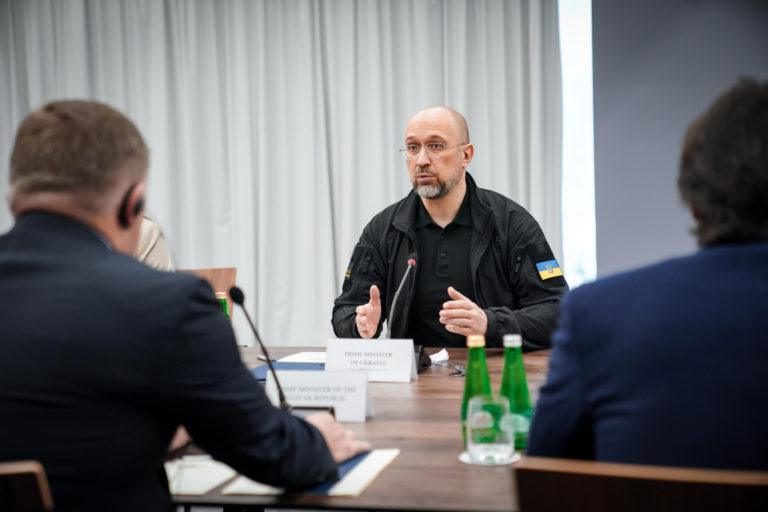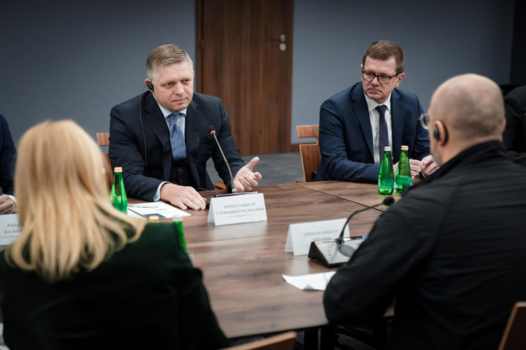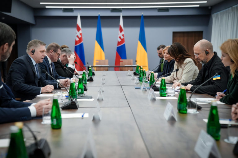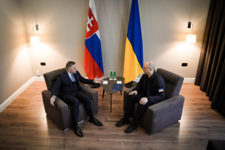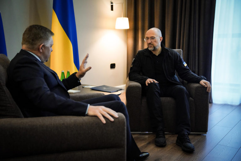 Slovenský premiér Robert Fico na stretnutí s ukrajinským premiérom Denysom Šmyhalom. Foto: twitter.com