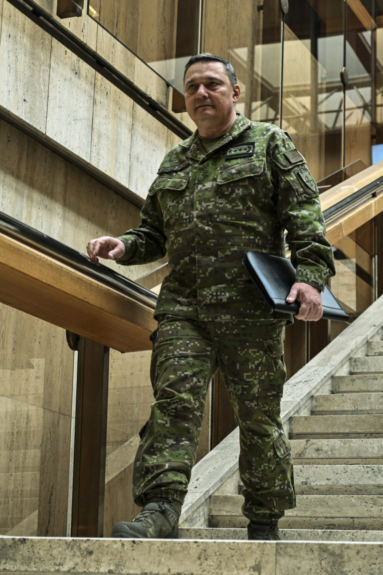 Náčelník Generálneho štábu Ozbrojených síl SR Daniel Zmeko po ukončení rokovania 19. schôdze vlády SR a Bezpečnostnej rady SR. Bratislava, 26. február 2024. Foto: SITA/Milan Illík