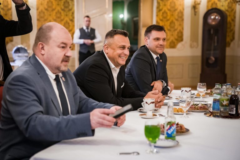 Zľava: Zástupca za stranu Slovenská národná strana (SNS) Rudolf Huliak, predseda SNS Andrej Danko a podpredseda vlády a minister životného prostredia SR Tomáš Taraba počas rokovania koaličnej rady na Úrade vlády SR o koordinácii postupu koaličných strán v rámci schôdze NR SR, ktorá začne 16. apríla 2024. Bratislava, 10. apríl 2024. Foto: SITA/Úrad vlády SR.