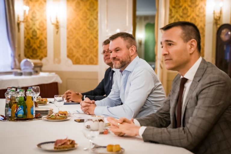 Zľava: Člen predsedníctva Hlas-SD Peter Žiga, predseda Hlas-SD Peter Pellegrin a minister školstva, vedy, výskumu, vývoja a mládeže SR Tomáš Drucker počas rokovania koaličnej rady na Úrade vlády SR o koordinácii postupu koaličných strán v rámci schôdze NR SR, ktorá začne 16. apríla 2024. Bratislava, 10. apríl 2024. Foto: SITA/Úrad vlády SR.