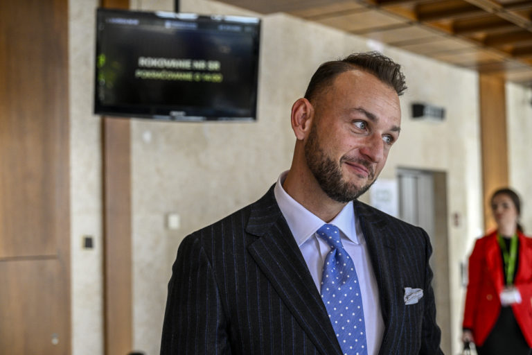 Poslanec NR SR za hnutie Slovensko Gábor Grendel po schválení programového vyhlásenia vlády (PVV) Roberta Fica v rámci rokovania 3. schôdze Národnej rady SR. Bratislava, 21. november 2023. Foto: SITA/ Milan Illík