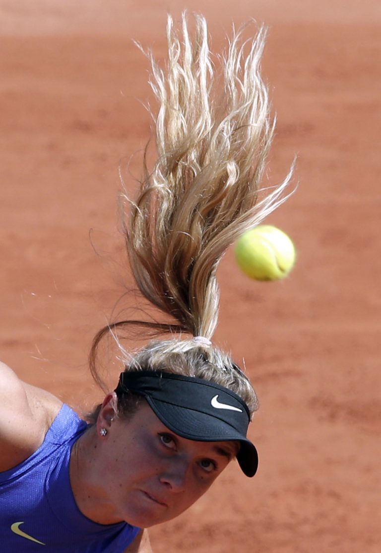 Ukrajinská tenistka Elina Svitolinová počas osemfinálového zápasu Roland Garros, v ktorom zdolala Chorvátku Petru Martičovú 4:6, 6:3, 7:5. Paríž, 5. jún 2017. Foto: SITA/AP.