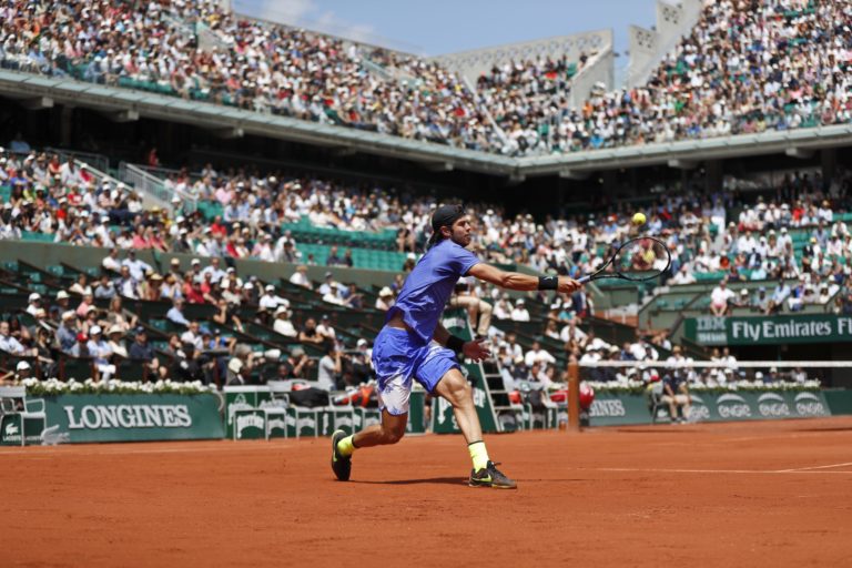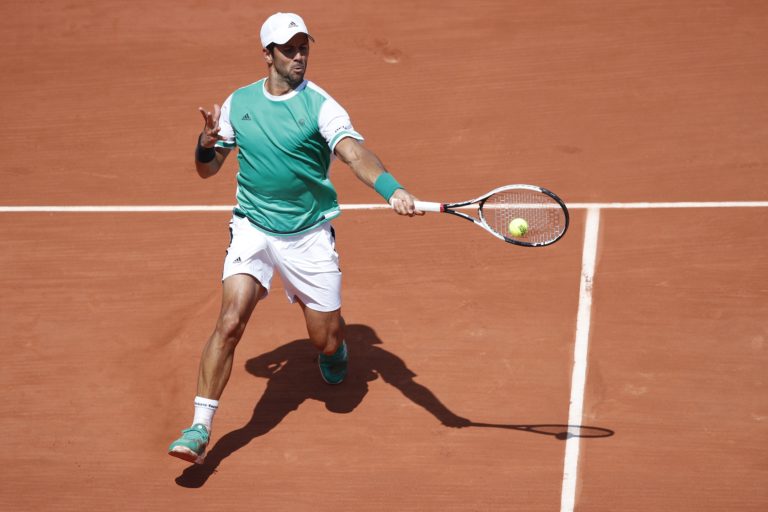 Španielsky tenista Fernando Verdasco počas osemfinálového zápasu Roland Garros, v ktorom podľahol Japoncovi Keiovi Nišikorimu 6:0, 4:6, 4:6, 0:6. Paríž, 5. jún 2017. Foto: SITA/AP.