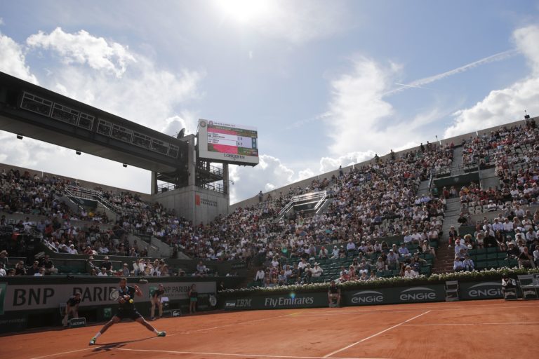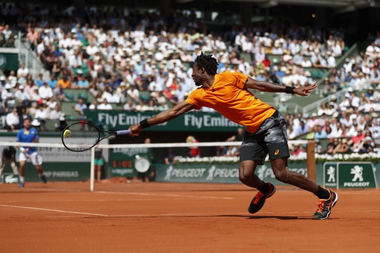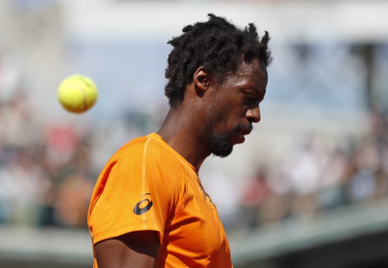 Francúzsky tenista Gael Monfils počas osemfinálového zápasu na Roland Garros, v ktorom podľahol Švajčiarovi Stanovi Wawrinkovi 5:7, 6:7, 2:6. Paríž, 5. jún 2017. Foto: SITA/AP.