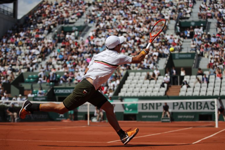 Japonský tenista Kei Nišikori počas osemfinálového zápasu Roland Garros, v ktorom zdolal Španiela Fernanda Verdasca 0:6, 6:4, 6:4, 6:0. Paríž, 5. jún 2017. Foto: SITA/AP.