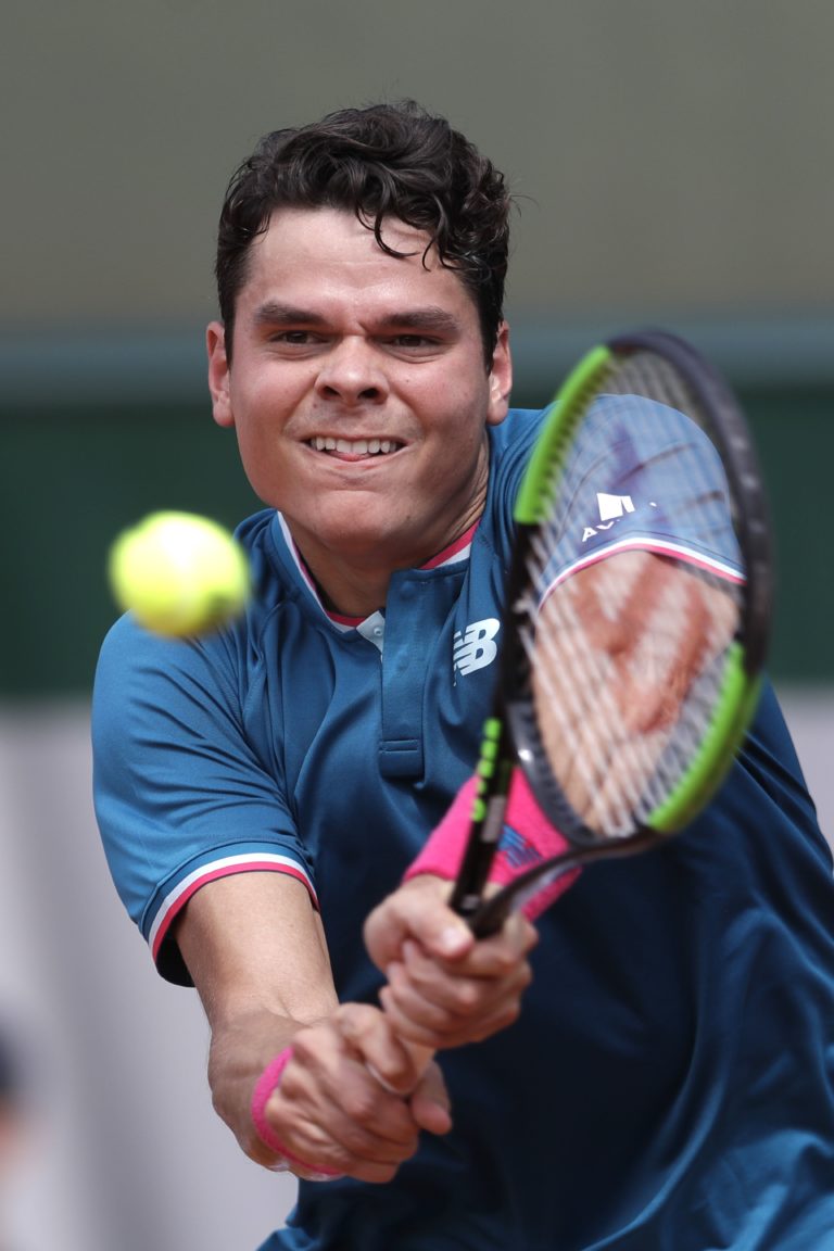 Kanadský tenista Milos Raonic počas zápasu 1. kola na Roland Garros, v ktorom zdolal Belgičana Stevena Darcisa 6:3, 6:4, 6:2. Paríž, 29. máj 2017. Foto: SITA/AP.