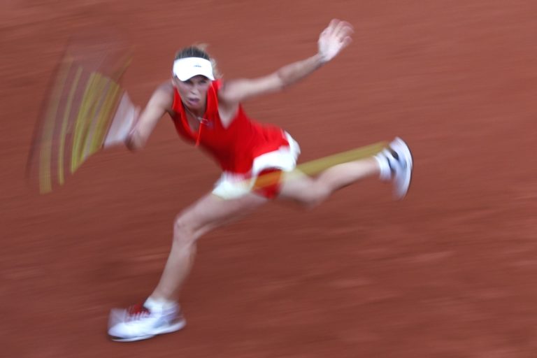 Dánka Caroline Wozniacka počas zápasu 3. kola Roland Garros proti Američanke Catherine Bellisovej. Paríž, 2. jún 2017. Foto: SITA/AP