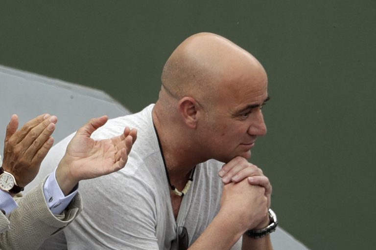 Tréner Novaka Djokoviča Andre Agassi sleduje zápas 3. kola na Roland Garros. Paríž, 2. jún 2017. Foto: SITA/AP