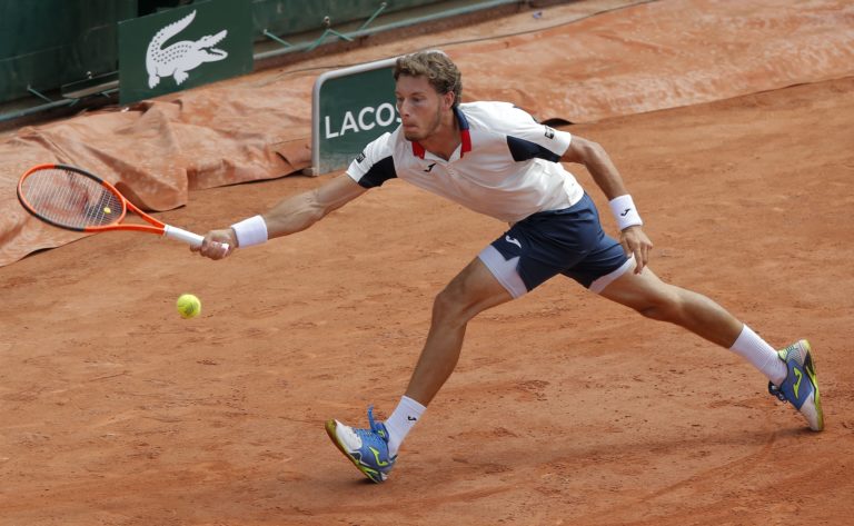 Španielsky tenista Pablo Carreno Busta počas zápasu 3. kola Roland Garros, v ktorom zdolal Bulhara Grigora Dimitrova 7:5, 6:3, 6:4. Paríž, 2. jún 2017. Foto: SITA/AP.
