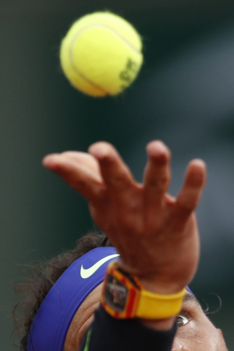 Španielsky tenista Rafael Nadal počas zápasu 3. kola Roland Garros, v ktorom deklasoval Gruzínčana Nikoloza Basilašviliho 6:0, 6:1, 6:0. Paríž, 2. jún 2017. Foto: SITA/AP.
