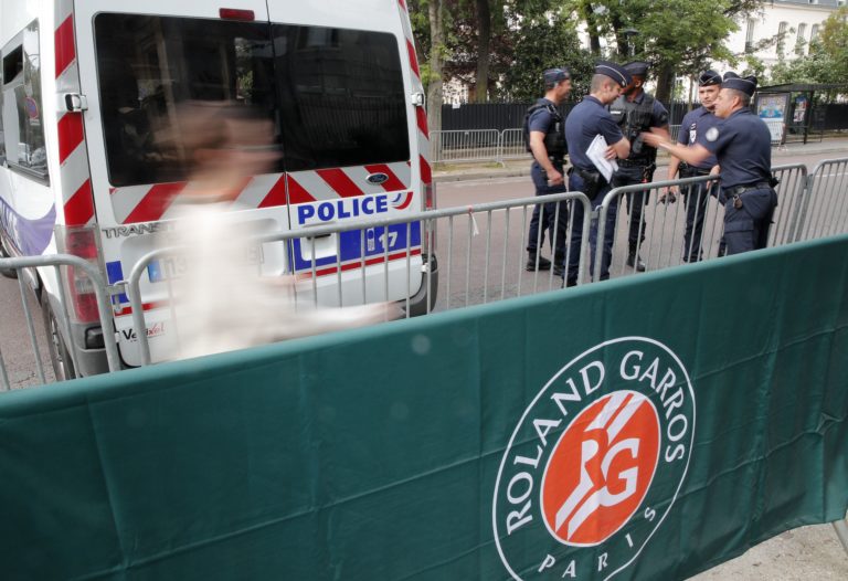 Policajti pred areálom, kde sa hrajú zápasy druhého grandslamového turnaja roka Roland Garros. Paríž, 2. máj 2017.