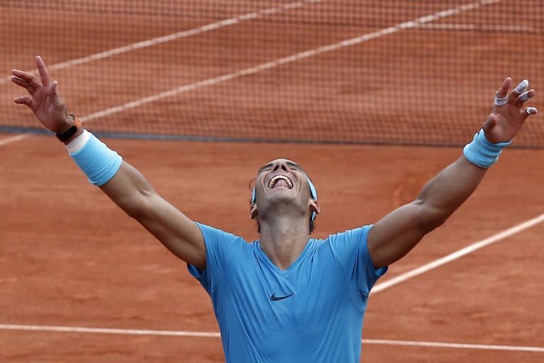 Španiel Rafael Nadal počas finále Roland Garros, v ktorom si poradil s Rakúšanom Dominicom Thiemom. Paríž, 10. jún 2018. Foto: SITA/AP