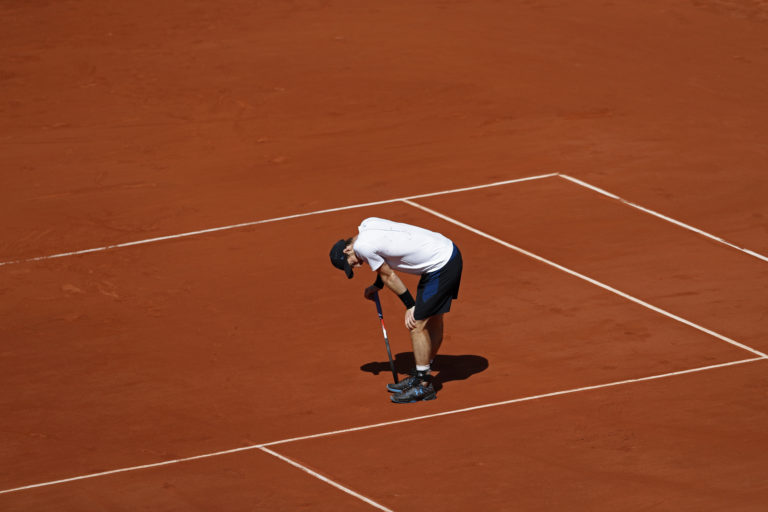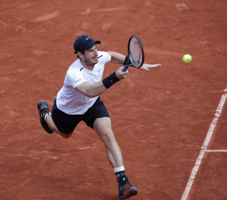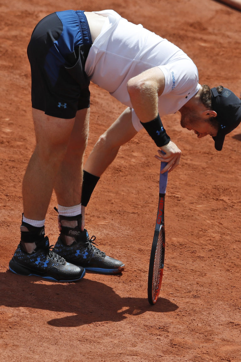 Britský tenista Andy Murray počas semifinálového zápasu Roland Garros, v ktorom podľahol Švajčiarovi Stanovi Wawrinkovi 7:6 (6), 3:6, 7:5, 6:7 (3), 1:6. Paríž, 9. jún 2017. Foto: SITA/AP.
