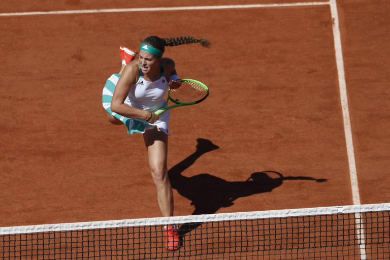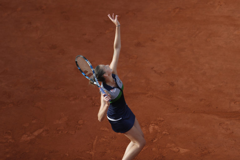 Česká tenistka Karolína Plíšková počas semifinálového zápasu na Roland Garros, v ktorom podľahla Rumunke Simone Halepovej 4:6, 6:3, 3:6. Paríž, 8. jún 2017. Foto: SITA/AP.