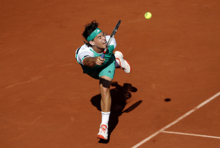 Rakúsky tenista Dominic Thiem počas semifinálového zápasu Roland Garros, v ktorom podľahol Španielovi Rafaelovi Nadalovi 3:6, 4:6, 0:6. Paríž, 9. jún 2017. Foto: SITA/AP.