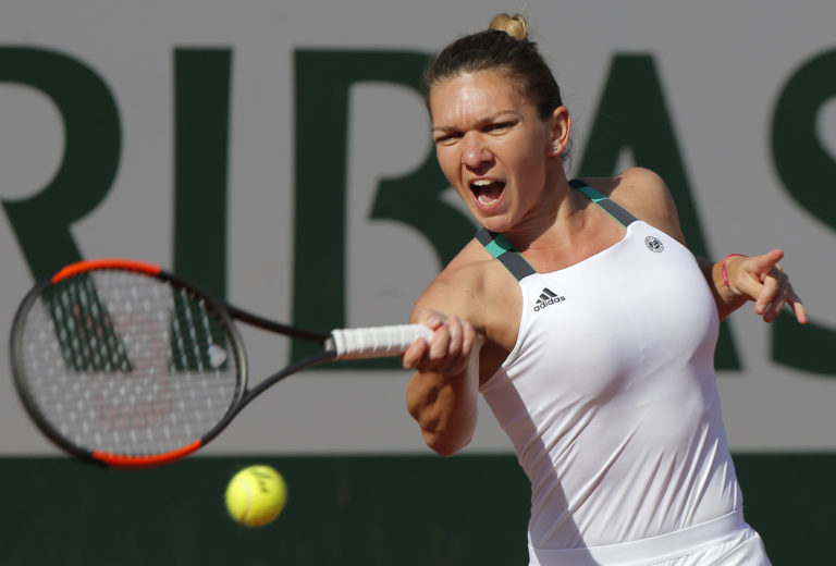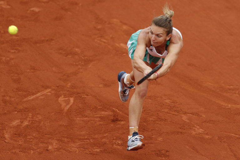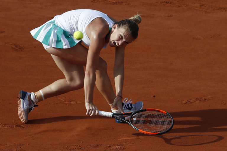 Rumunská tenistka Simona Halepová počas semifinálového zápasu Roland Garros, v ktorom zdolala Češku Karolínu Plíškovú 6:4, 3:6, 6:3. Paríž, 8. jún 2017. Foto: SITA/AP