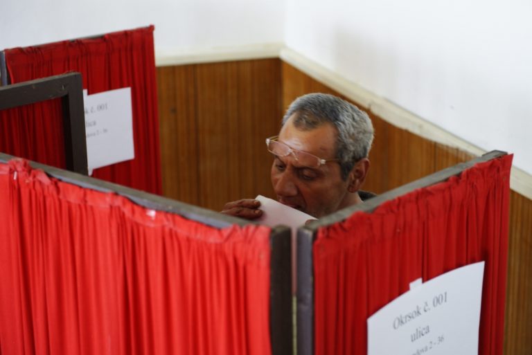 Volebný akt občana na sídlisku Luník IX počas druhého kola voľby prezidenta Slovenskej republiky. Košice, 29. marec 2014. Foto: SITA/Ivan Fleischer