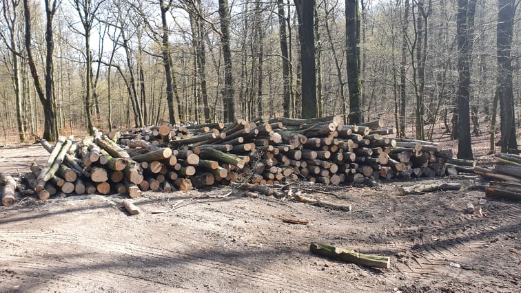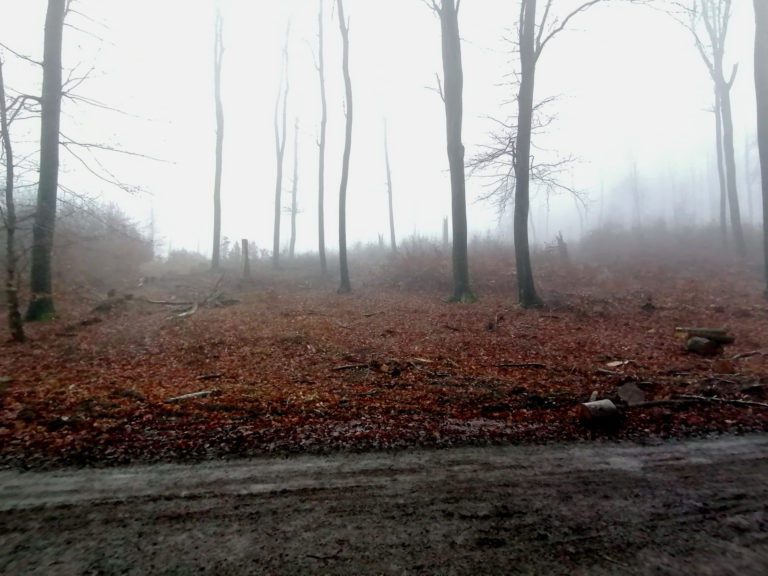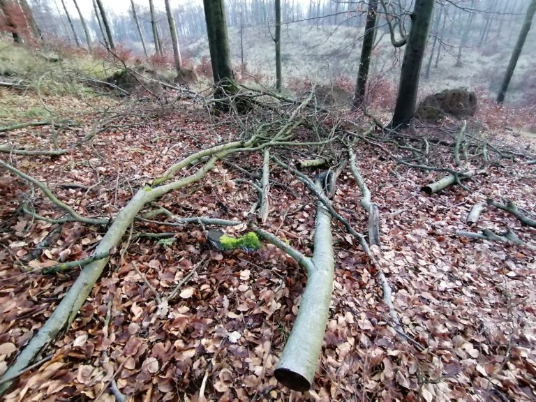 Prírode blízke hospodárenie Mestských lesov dvesto metrov po červenej od Máriinho prameňa smerom na Biely kríž. V pozadí rúbanisko po dávnejšej kalamite, predtým oddelené pásom hustého starého lesa, 18. december Foto: www.facebook.com