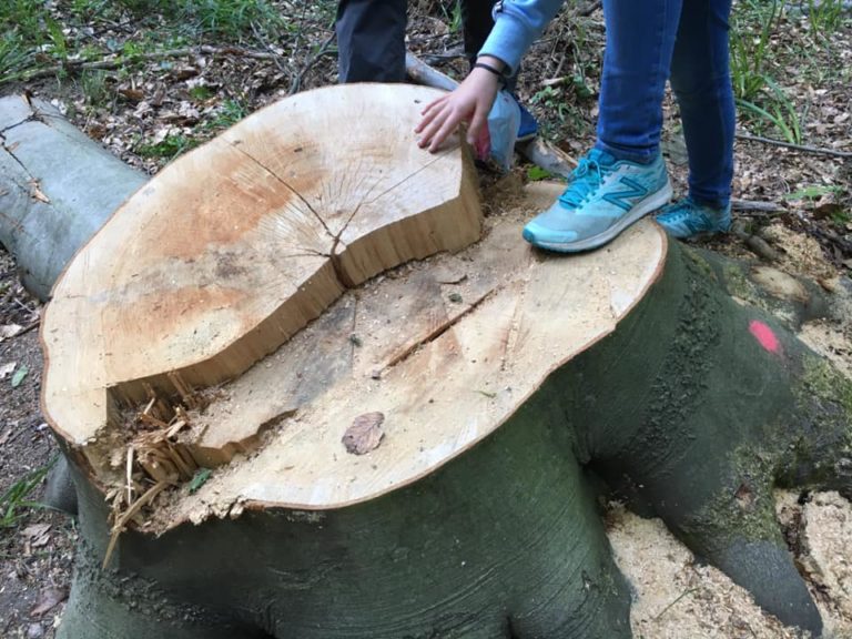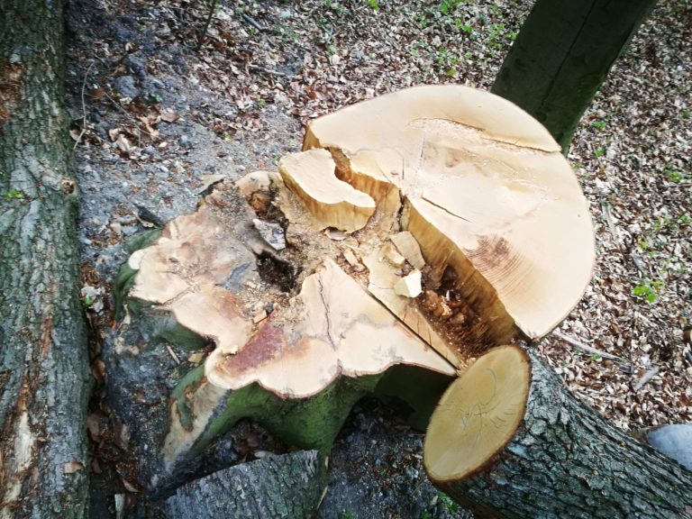 Peň viac ako storočného stromu po prebierkovej ťažbe na Železnej studničke, máj 2020 Foto: www.facebook.com