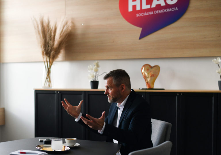 Predseda strany Hlas - sociálna demokracia (Hlas-SD) Peter Pellegrini počas rozhovoru pre agentúru SITA. Bratislava, 26. apríl 2023. Foto: SITA/Martin Medňanský.
