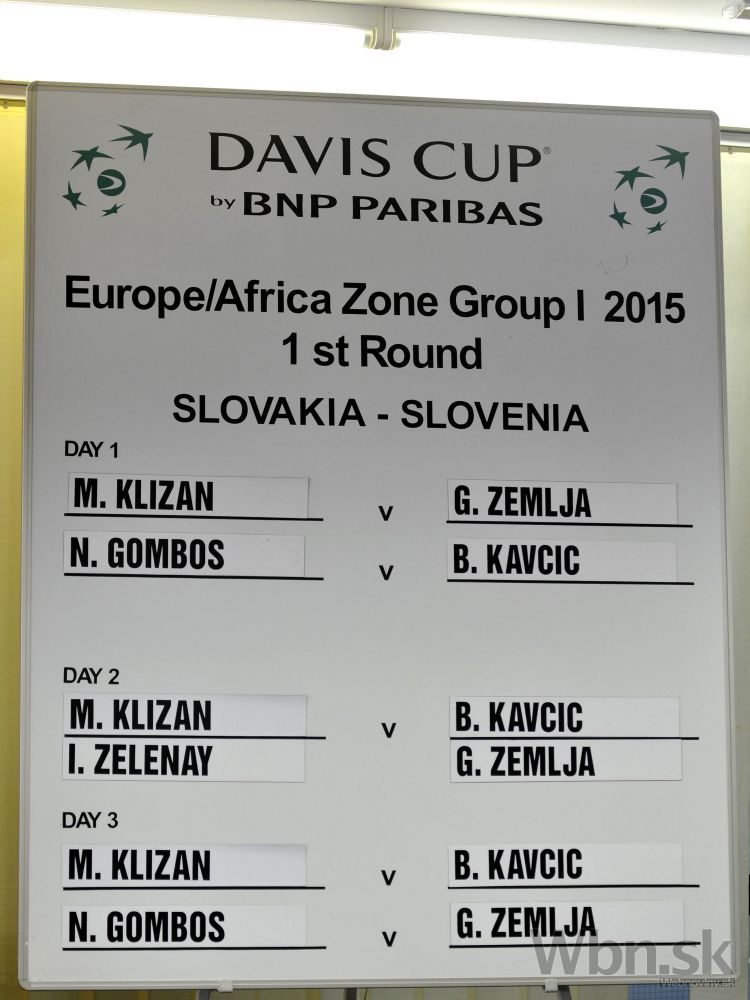 Rozlosovanie zápasov počas žrebu a následnej tlačovej konferencie pred stretnutím 1. kola I. skupiny euro-africkej zóny Davisovho pohára mužských reprezentačných družstiev 2015 Slovensko – Slovinsko.
