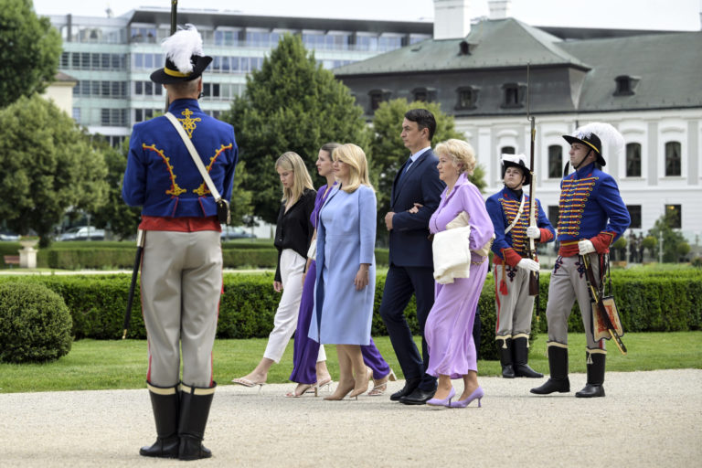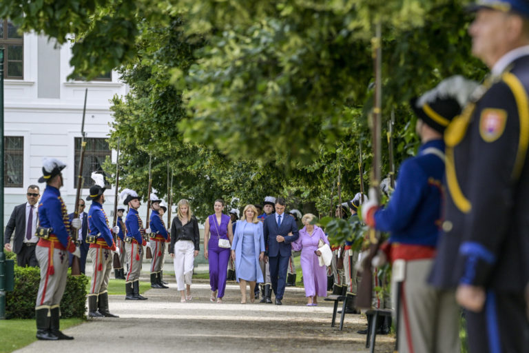 Prezidentka SR Zuzana Čaputová (druhá zľava) počas záverečnej prehliadky Čestnej stráže prezidenta Slovenskej republiky na Zadnom nádvorí Prezidentského paláca. Bratislava, 14. jún 2024. Foto: SITA/Milan Illík
