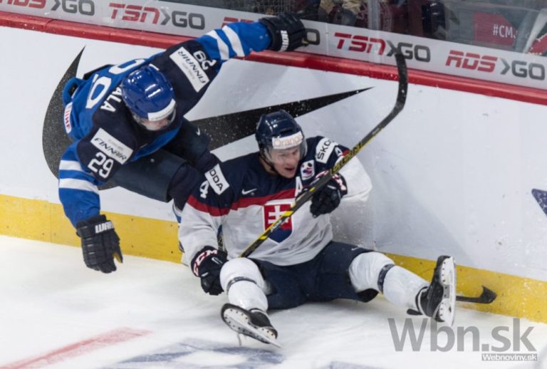 Slovenský obranca Miroslav Rosandič v súboji s fínskym útočníkom Ottom Rauhalom počas zápasu na MS do 20 rokov. Montreal, 27. december 2014. Foto: SITA/AP