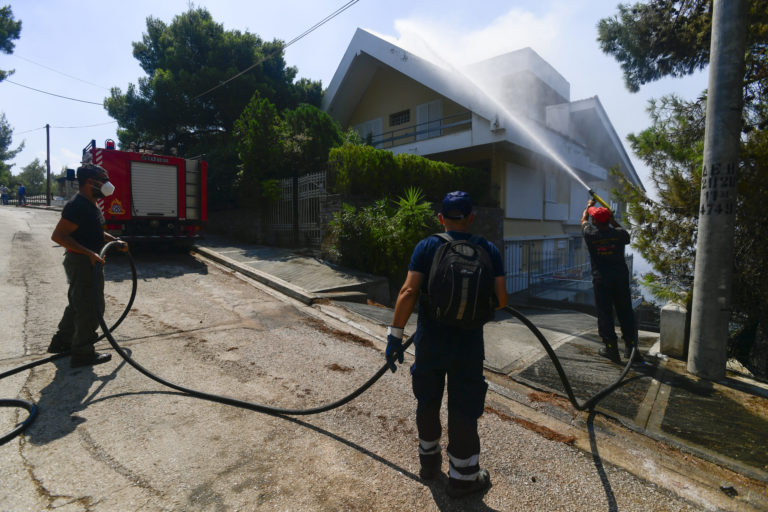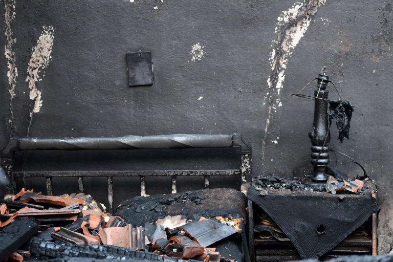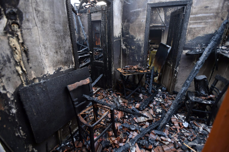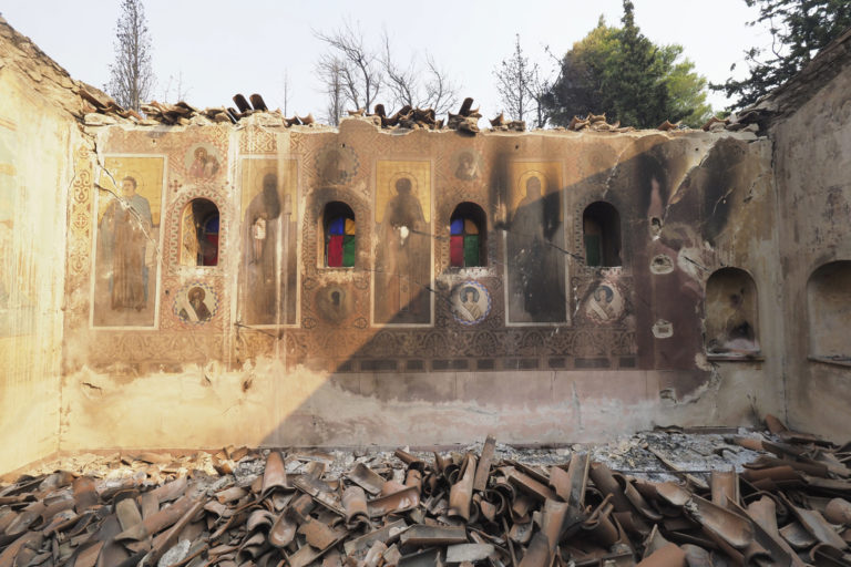 V dedinke Kastri na ostrove Evia spálil oheň aj niekoľko domov. Grécko, Evia 11.8.2021. Foto: SITA/AP