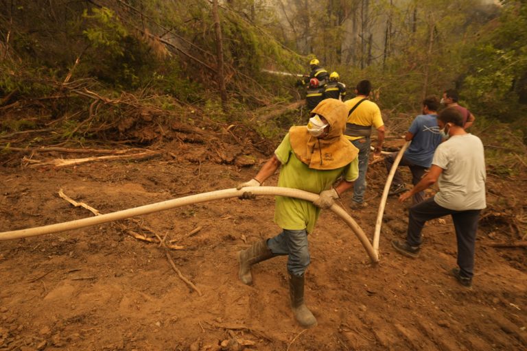Rozsiahle lesné požiare sa dostali až k obydliam a mnohým ľuďom odrezali cestu do bezpečia. S požiarmi bojujú stovky profesionálnych aj dobrovoľných hasičov. Foto: SITA/AP