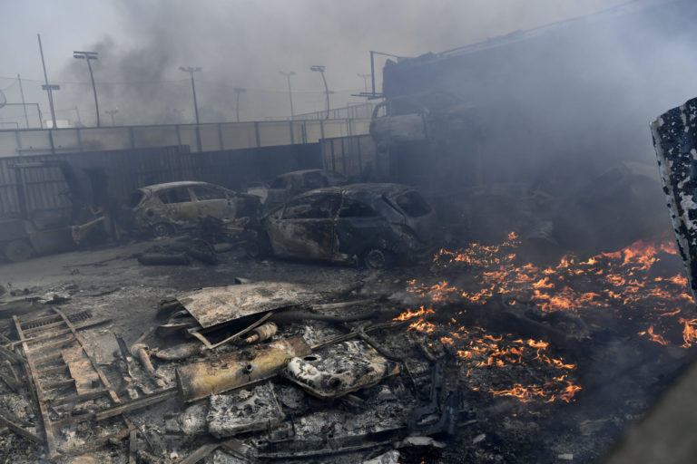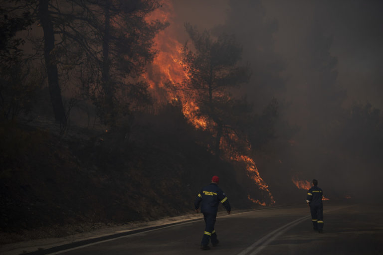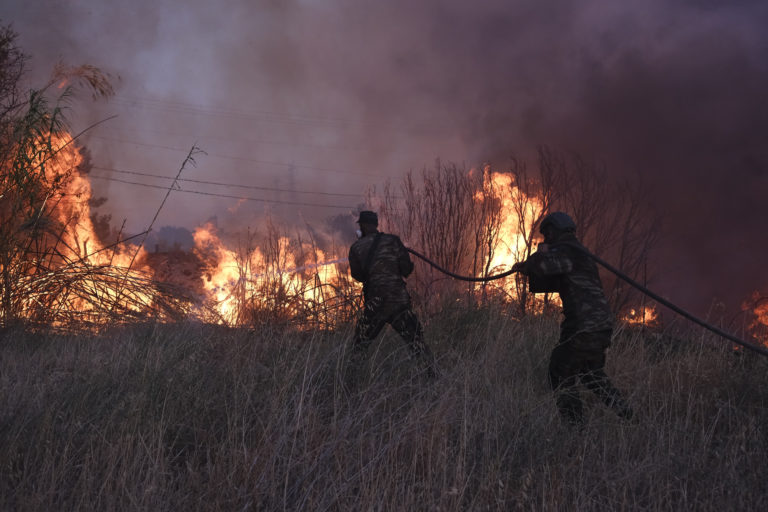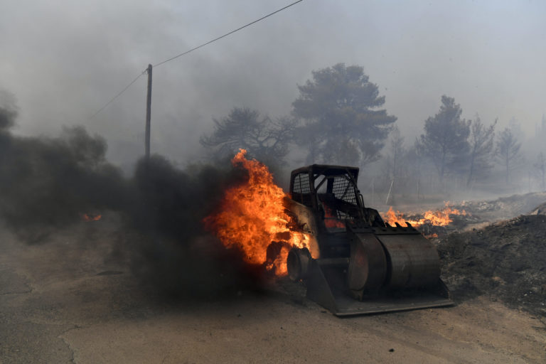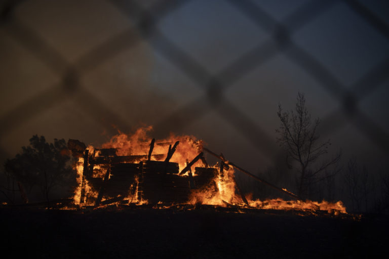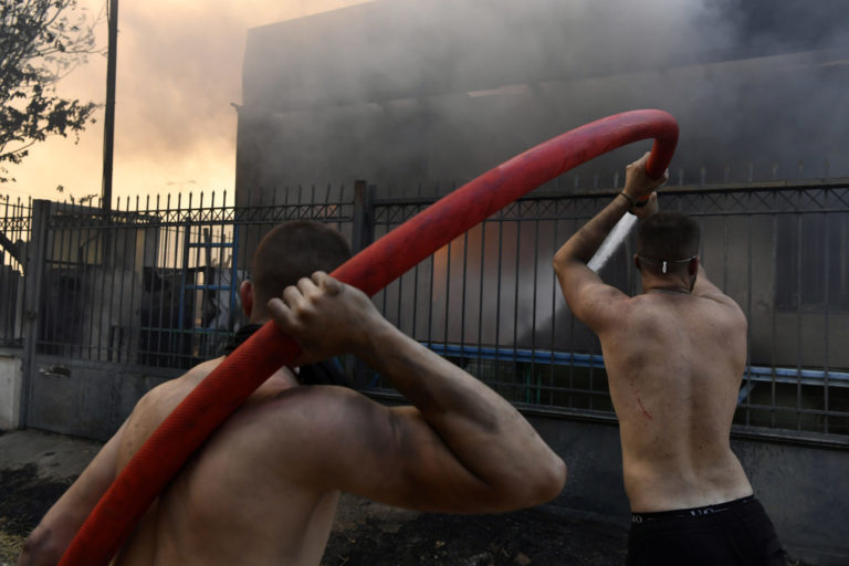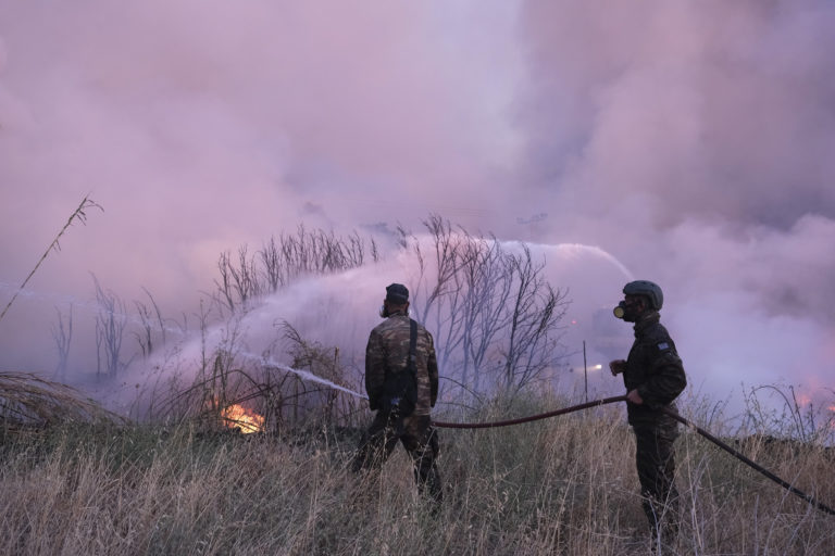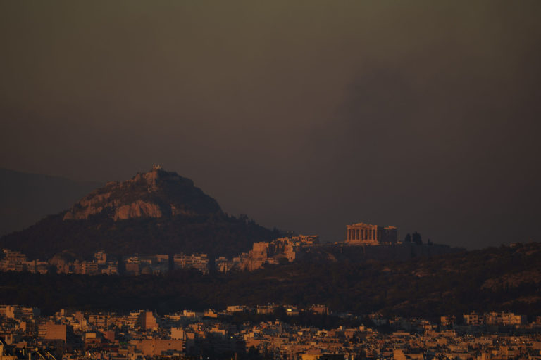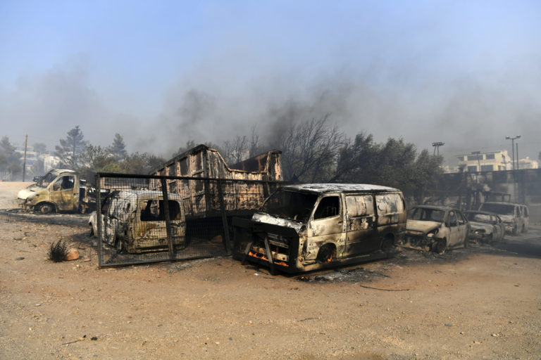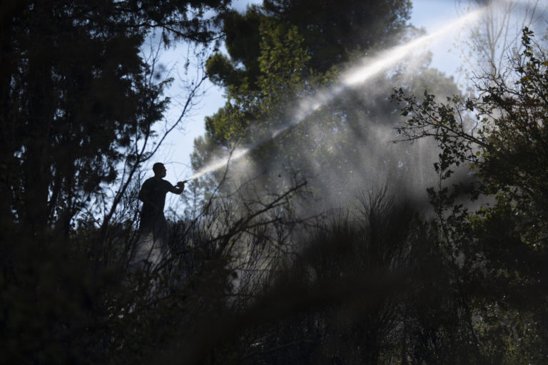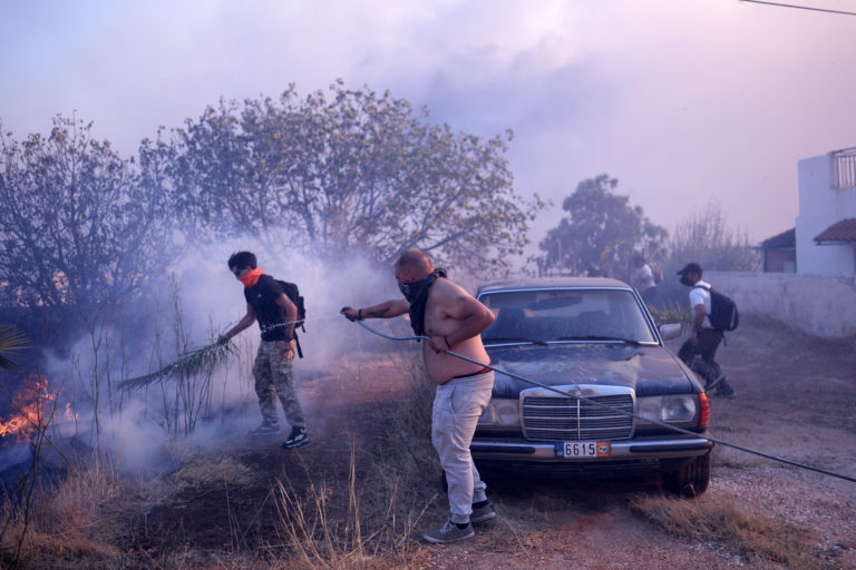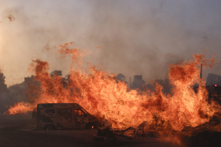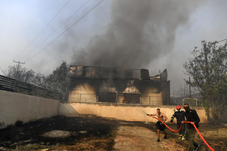 Rozsiahly lesný požiar na severných predmestiach Atén sa začal v nedeľu pri jazere Maratón, prehnal sa cez vrch Pendeli a dosiahol aténske predmestia na severe. Spálil niekoľko domov a podnikov. Okrem toho spôsobil výpadky elektriny a viedol k evakuáciám nemocníc či kláštorov. Foto: SITA/AP