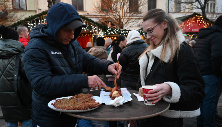 Chutné jedlo počas slávnostného otvorenia 29. ročníka Košických rozprávkových Vianoc. Košice, 1. december 2024. Foto: SITA/Viktor Zamborský.