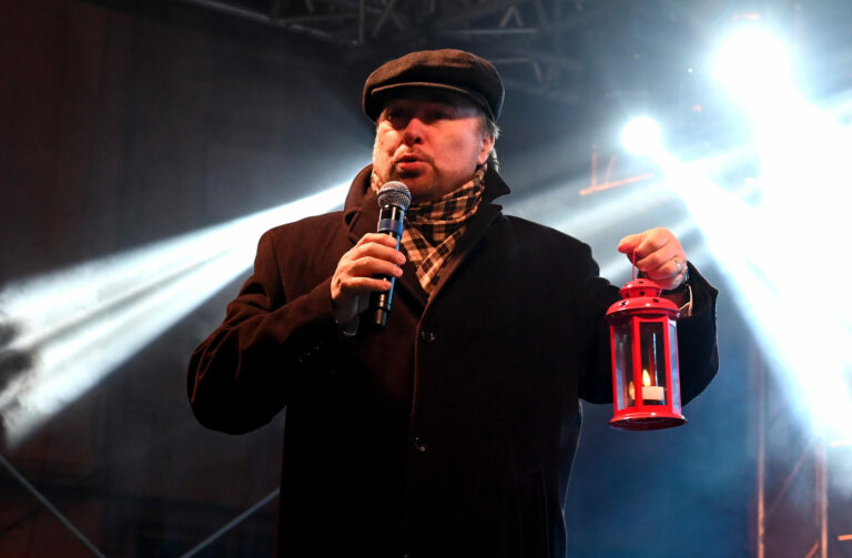 Jaroslav Dvorský potešil spevom počas rozsvietenie vianočného stromčeka v rámci slávnostného otvorenia 29. ročníka Košických rozprávkových Vianoc. Košice, 1. december 2024. Foto: SITA/Viktor Zamborský.