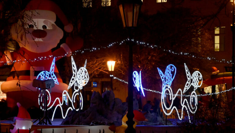 Svetelná výzdoba počas slávnostného otvorenia 29. ročníka Košických rozprávkových Vianoc. Košice, 1. december 2024. Foto: SITA/Viktor Zamborský.