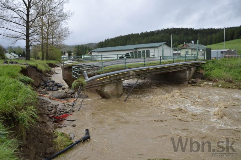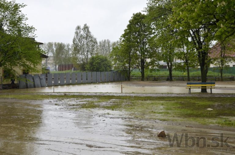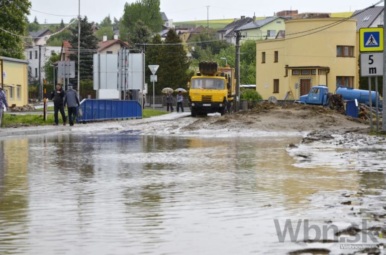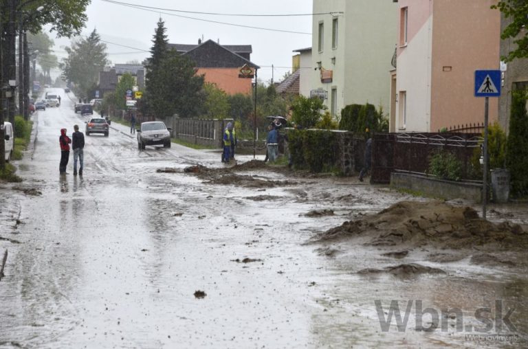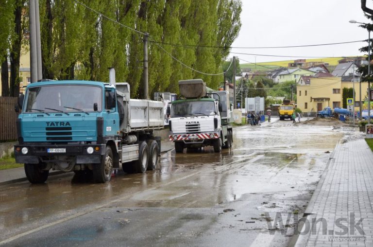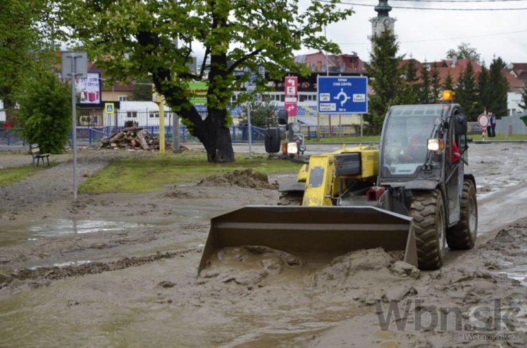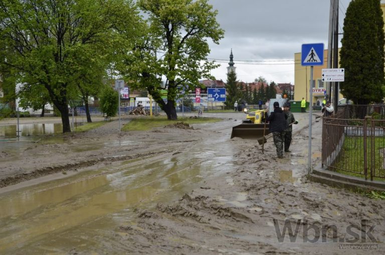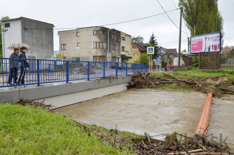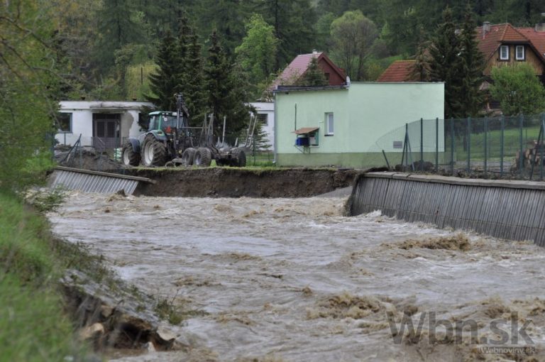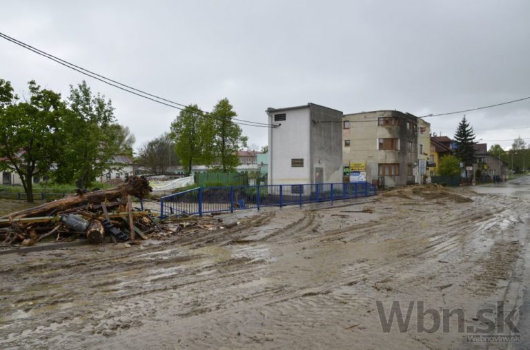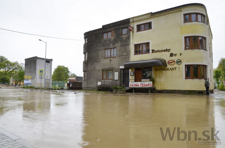 Obyvatelia Kežmarku majú za sebou rušnú noc. V piatok nadránom kulminoval Ľubický potok, ktorý v meste zaplavil desiatky domov a objektov. Voda už mierne klesla, no stále neprestáva pršať. Kežmarok, 16. máj 2014. Foto: SITA/Radoslav Maťaš