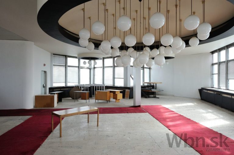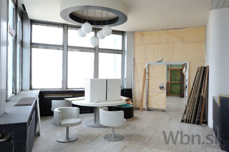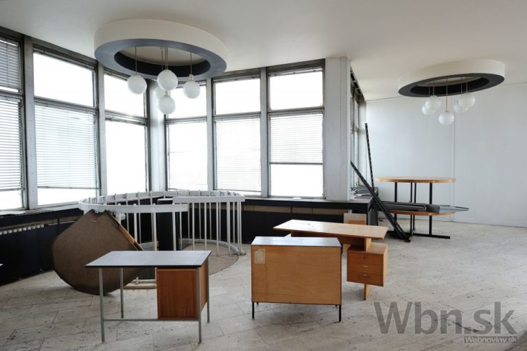 Rozhlas a televízia Slovenska (RTVS) opustila výškovú budovu v Mlynskej doline v Bratislave. Zamestnanci, ktorí pracovali v budove známej takmer 40 rokov ako symbol verejnoprávnej televízie, sa presťahovali do náprotivného zrekonštruovaného zdravotného strediska. Výšková budova ostala po vysťahovaní prázdna. ého zdravotného strediska. Výšková budova ostala po vysťahovaní prázdna. Na snímke pohľad do bývalej reštaurácie. Bratislava 5. marec 2015. Foto: SITA/Robert Tappert