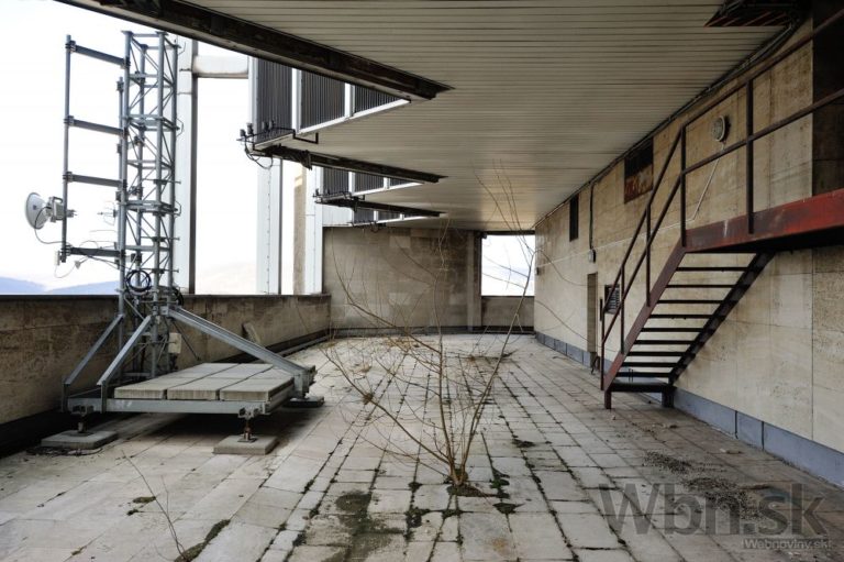 Rozhlas a televízia Slovenska (RTVS) opustila výškovú budovu v Mlynskej doline v Bratislave. Zamestnanci, ktorí pracovali v budove známej takmer 40 rokov ako symbol verejnoprávnej televízie, sa presťahovali do náprotivného zrekonštruovaného zdravotného strediska. Výšková budova ostala po vysťahovaní prázdna. Na snímke pohľad na terasu, ktorá sa nachádza vo výškovej budove RTVS. Bratislava, 5. marec 2015. Foto: SITA/Robert Tappert