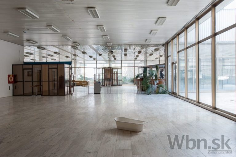 Rozhlas a televízia Slovenska (RTVS) opustila výškovú budovu v Mlynskej doline v Bratislave. Zamestnanci, ktorí pracovali v budove známej takmer 40 rokov ako symbol verejnoprávnej televízie, sa presťahovali do náprotivného zrekonštruovaného zdravotného strediska. Výšková budova ostala po vysťahovaní prázdna. ého zdravotného strediska. Výšková budova ostala po vysťahovaní prázdna. Na snímke pohľad do vestibulu výškovej budovy v Mlynskej doline. Bratislava 5. marec 2015. Foto: SITA/Robert Tappert