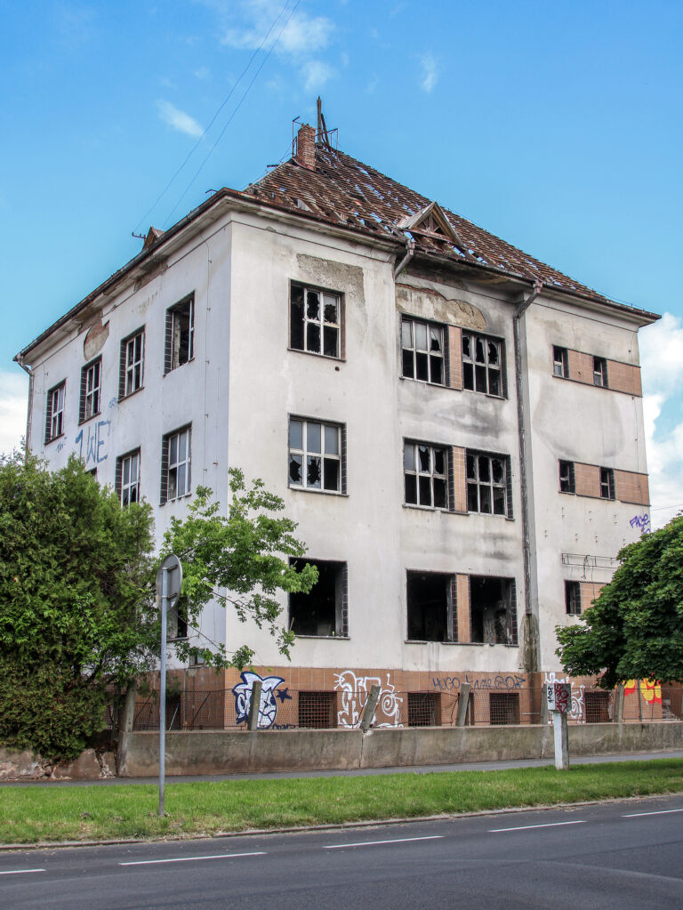 Opustená bývalá poliklinika, ktorá sa nazývala Ambulatórium pod Hlavnou stanicou na Žabotovej ulici v Bratislave. Bratislava, 21. máj 2025. Foto: SITA/Andrea Mezeiová