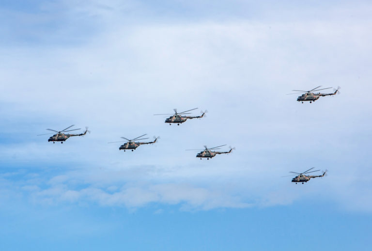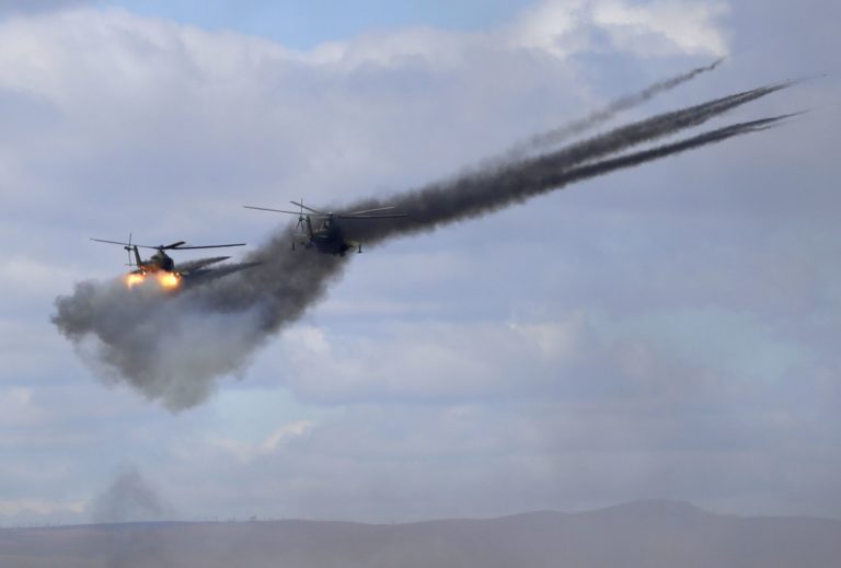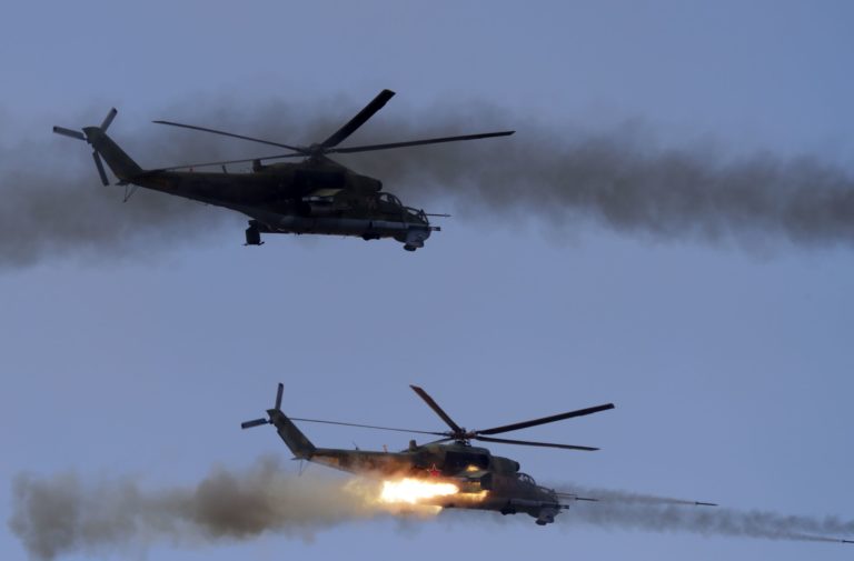 Ruské vojenské helikoptéry počas vojenského cvičenia Vostok 2018. Foto: SITA/AP