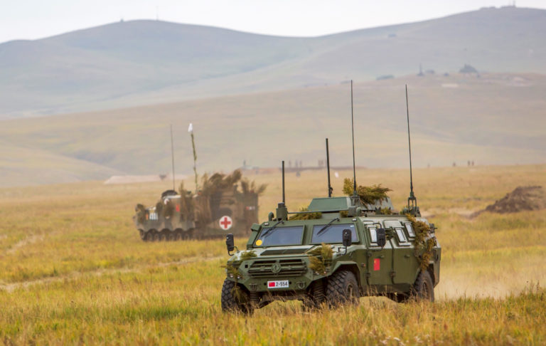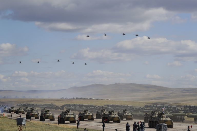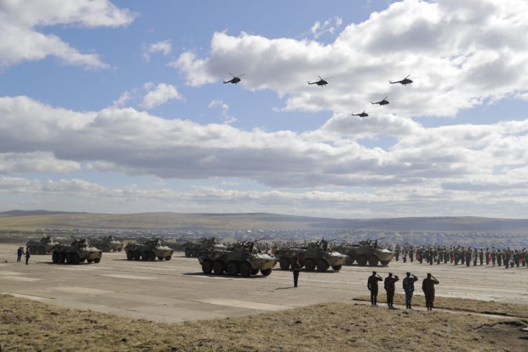 Ruské vojenské cvičenie Vostok 2018 na Sibíri, na ktorom sa zúčastňujú aj vojaci Mongolska a Číny. Foto: Russian Defense Ministry Press Service pool photo via AP.