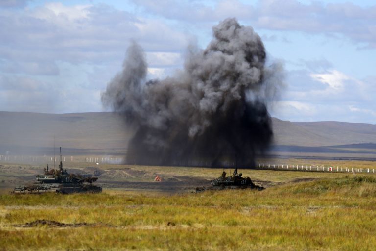 Ruské tanky počas vojenského cvičenia Vostok 2018. Foto: SITA/AP