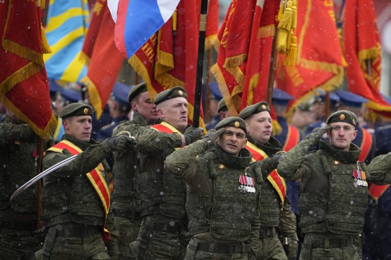 Ruskí vojaci pochodujú počas vojenskej prehliadky pri príležitosti Dňa víťazstva v Moskve, Rusko, vo štvrtok 9. mája 2024, pri príležitosti 79. výročia ukončenia druhej svetovej vojny. Foto: SITA/AP