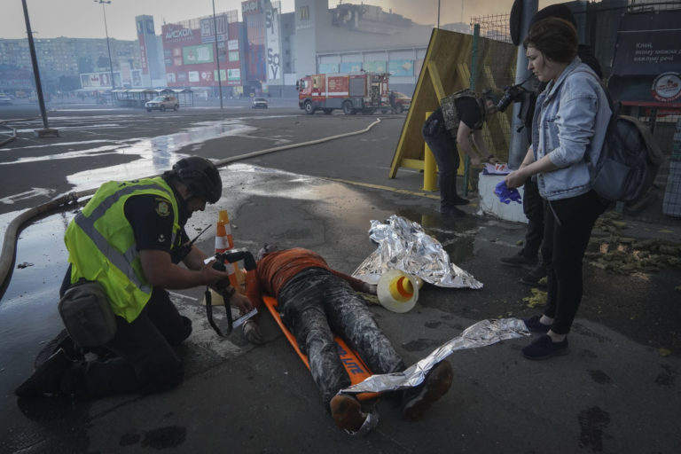 Hypermarket v Charkove zasiahli dve ruské riadené bomby, ktoré spôsobili požiar na ploche 15-tisíc štvorcových metrov. Charkov, 25. máj 2024. Foto: SITA/AP.