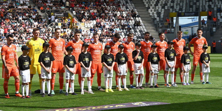 Hráči MFK Ružomberok počas finálového futbalového zápasu Slovnaft Cup 2023/2024 medzi MFK Ružomberok - FC Spartak Trnava. Košice, 1. máj 2024. Foto: SITA/Viktor Zamborský