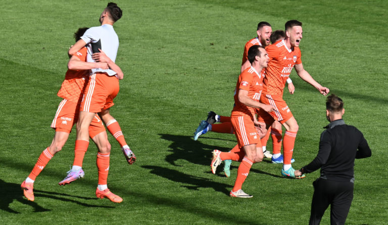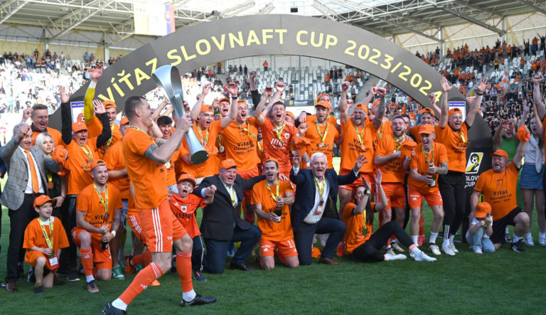 Radosť hráčov MFK Ružomberok po vyhratom finálovom futbalovom zápase Slovnaft Cup 2023/2024 medzi MFK Ružomberok - FC Spartak Trnava. Košice, 1. máj 2024. Foto: archívne, SITA/Viktor Zamborský
