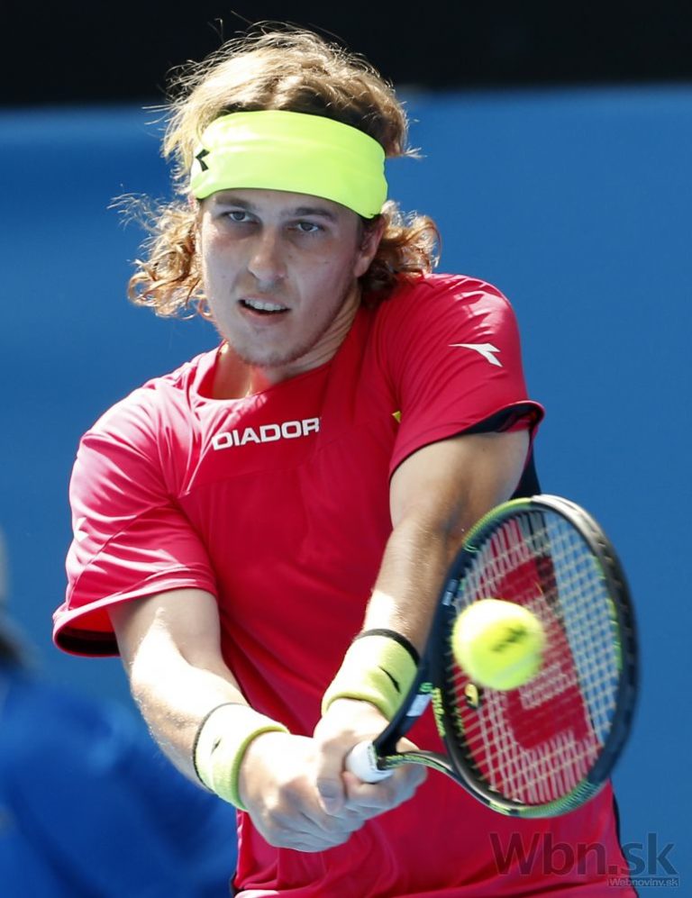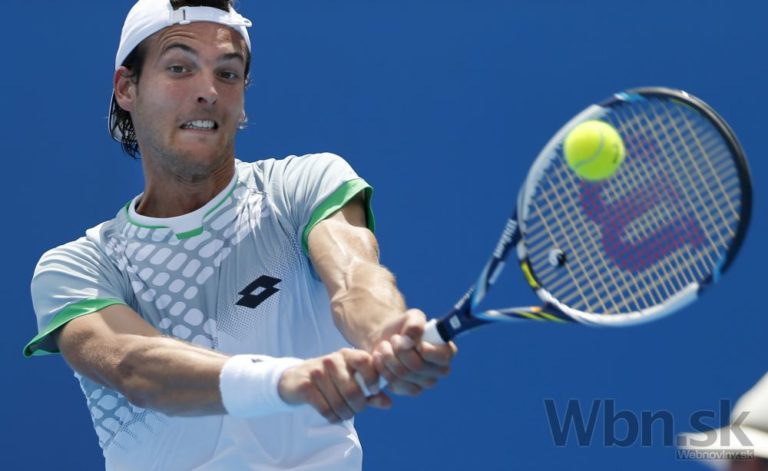 Slovenský tenista Lukáš Lacko počas zápasu druhého kola na Australian Open, v ktorom prehral s favorizovaným Grigorom Dimitrovom 3:6, 7:6, 3:6, 3:6. Melbourne, 21. január 2015. Foto: SITA/AP