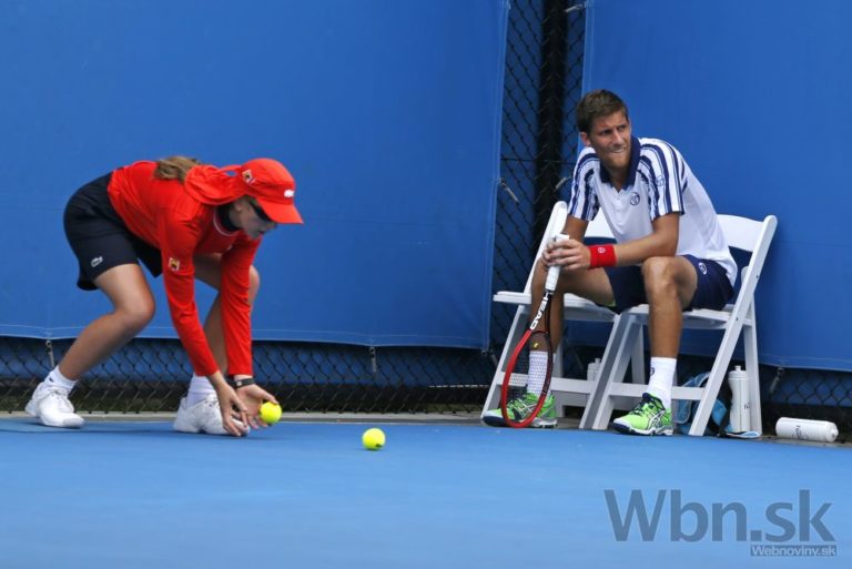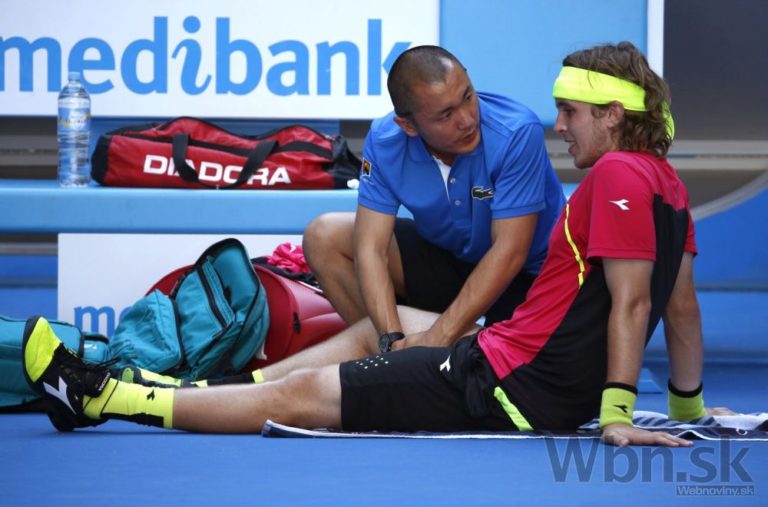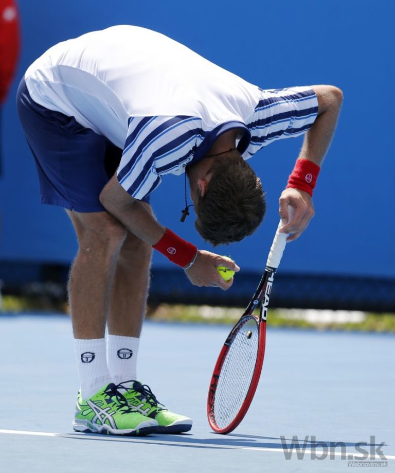Slovenský tenista Martin Kližan počas zápasu druhého kola na Australian Open proti Portugalčanovi Joaovi Sousovi, v ktorom za stavu 6:4, 6:7, 4:6 a 0:1 duel skrečoval. Melbourne, 21. január 2015. Foto: SITA/AP