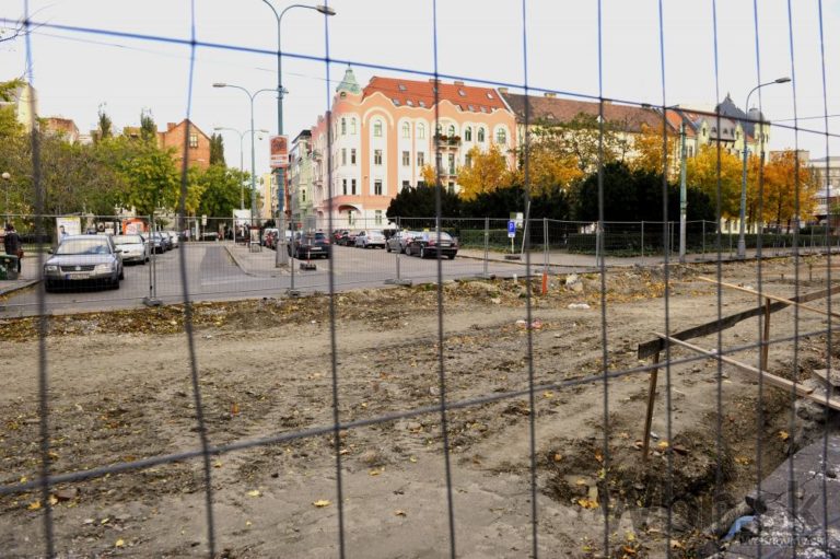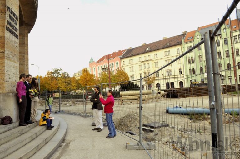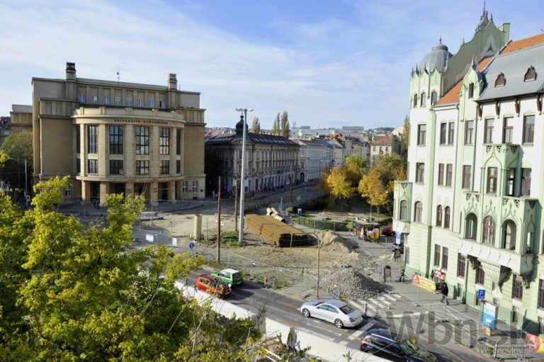 Pohľad na Šafárikovo námestie počas rekonštrukčných prác. Bratislava, 5. november 2014.